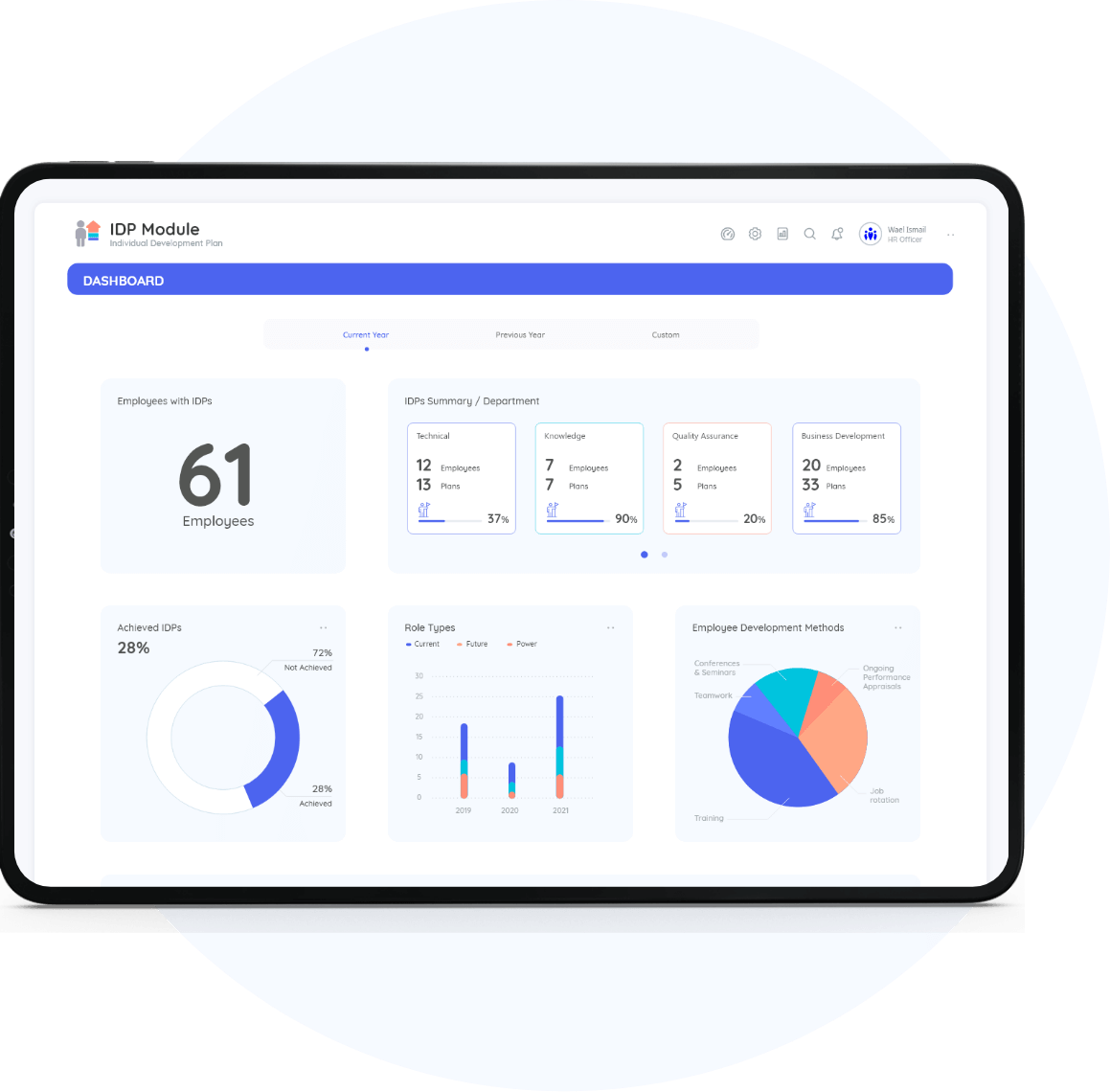 یتم إنشاء الخطة من خلال التعاون بین المدیرین والموظفین، وتحتوي خطة التنمیة الفردیة على أهداف التطویر المهنیة والخطوات اللازمة لتحقیقها خلال فترة زمنیة محددة. صمم خطط التنمیة الفردیة الخاصة بك باستخدام طریقة 70-20-10 وتابع تطور الخطة.